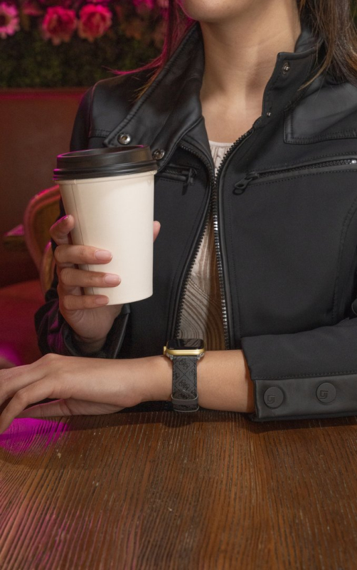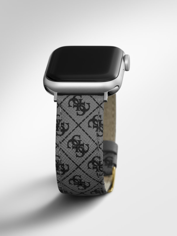 Kompatibilní s Apple Watch 38-40 mm. Celoplošný potisk loga 4G. Zapínání: přezka. Materiál: pravá kůže. Šířka pásku: 20 mm. *Apple Watch nejsou součástí zboží.