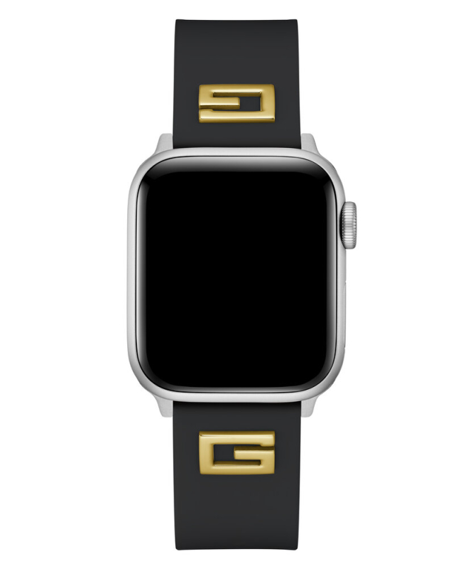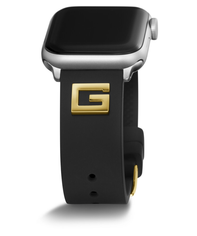 Dejte najevo svou vášeň pro značku GUESS s tímto hladkým silikonovým řemínkem a zlatým lesklým přívěskem ve tvaru „G“ na obou stranách. Kompatibilní s Apple Watch 38–40 mm.. Odnímatelný hodinkový řemínek. Kompatibilní s Apple Watch 38-40 mm. Kovové logo G. Zapínání: řemínek. Materiál: silikon. Šířka pásku: 20 mm. *Apple Watch nejsou součástí zboží.