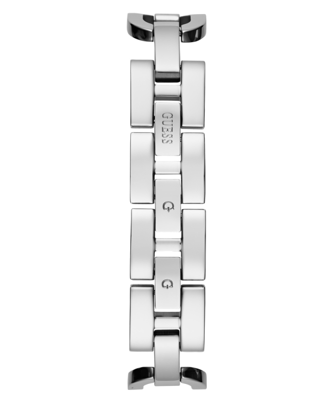 Leštěná povrchová úprava. Zapínání na sponu. Quartz baterie. Minerální tvrzené sklo. Zdobené zirkonovými krystaly. Bez podsvícení. Voděodolné do 30 metrů . Materiál pouzdra: recyklovaná ocel. Materiál pásku: recyklovaná ocel. Velikost pouzdra: 22 mm. Výška pouzdra: 7,4 mm. Šířka pásku: 15 mm.