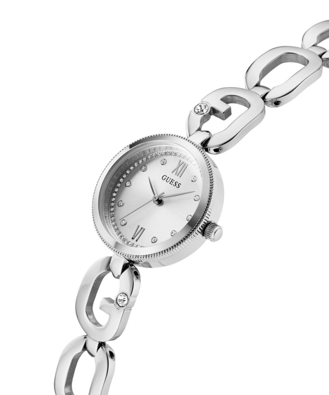 Posilněte se tímto krásným šperkovým kouskem s. logem G na náramku a kamínkovým osazením.. Samonastavitelné g-články činí tento kousek. snadno přizpůsobitelným. Skvělé samostatně nebo. ve vrstvení s jinými šperky!. Leštěná povrchová úprava. Zapínání na sponu. Quarts baterie. Minerální tvrzené sklo. Osázené zirkonovými krystaly . Bez podsvícení. Voděodolné do 30 metrů . Materiál pouzdra: recyklovaná nerezová ocel. Materiál pásku: recyklovaná nerezová ocel. Velikost pouzdra: 30 mm. Výška pouzdra: 8,8 mm. Šířka pásku: 14 mm.