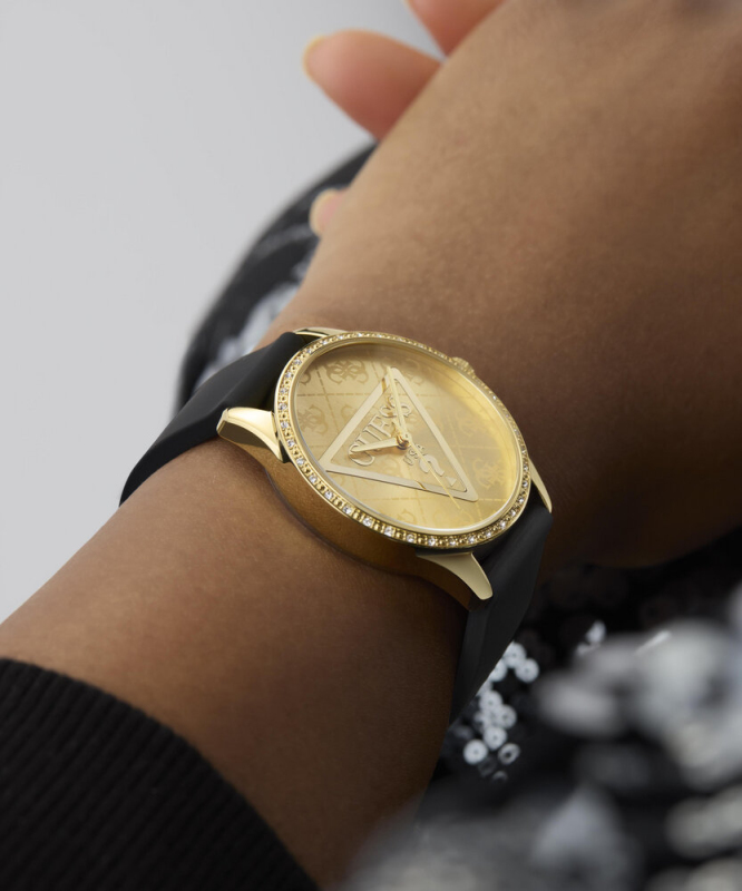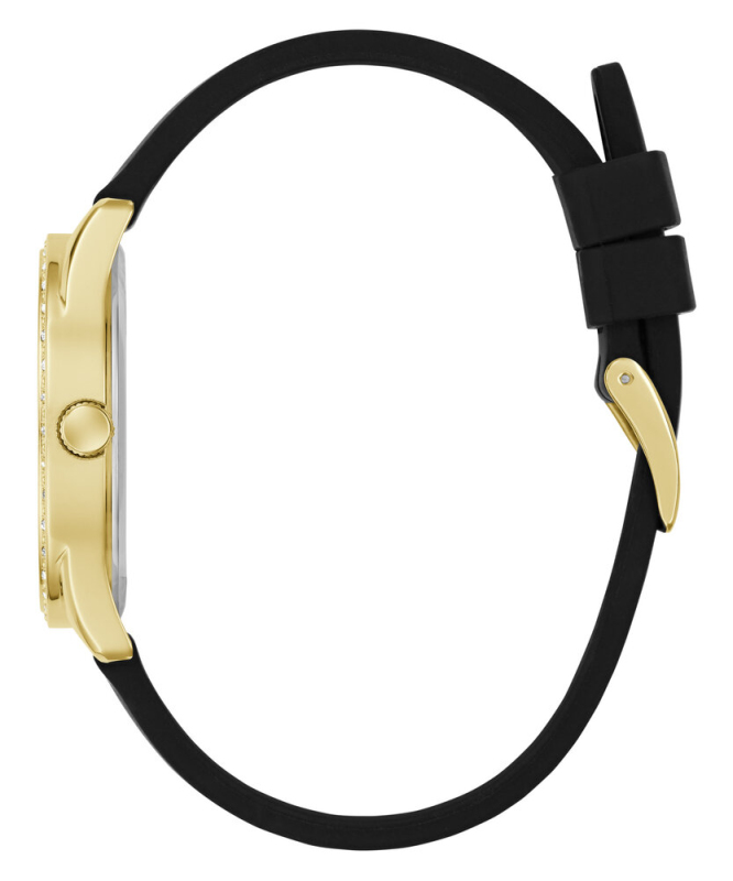 Leštěná povrchová úprava. Zapínání na přezku. Quarts baterie. Minerální tvrzené sklo. Kulaté pouzdro zdobené krystalky. Pouzdro střední velikosti . Bez podsvícení. Voděodolné do 30 metrů . Materiál pouzdra: recyklovaná nerezová ocel. Materiál pásku: silikon. Velikost pouzdra: 36 mm. Výška pouzdra: 9,15 mm. Šířka pásku: 18 mm.