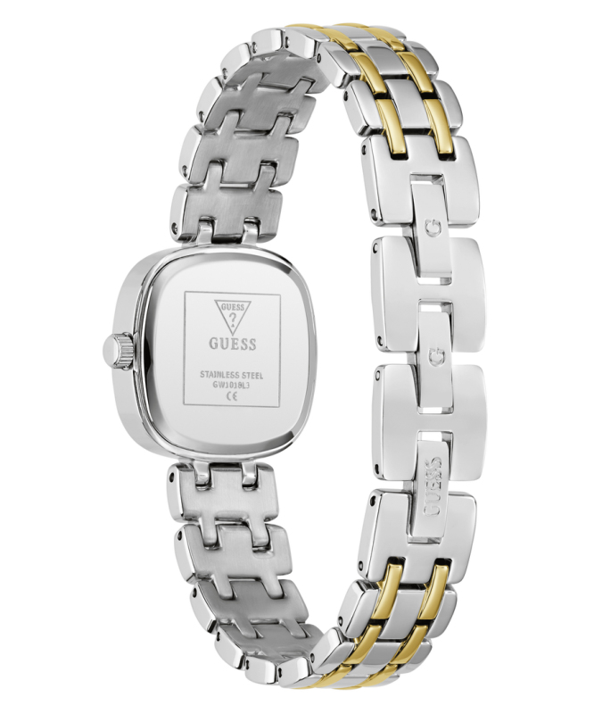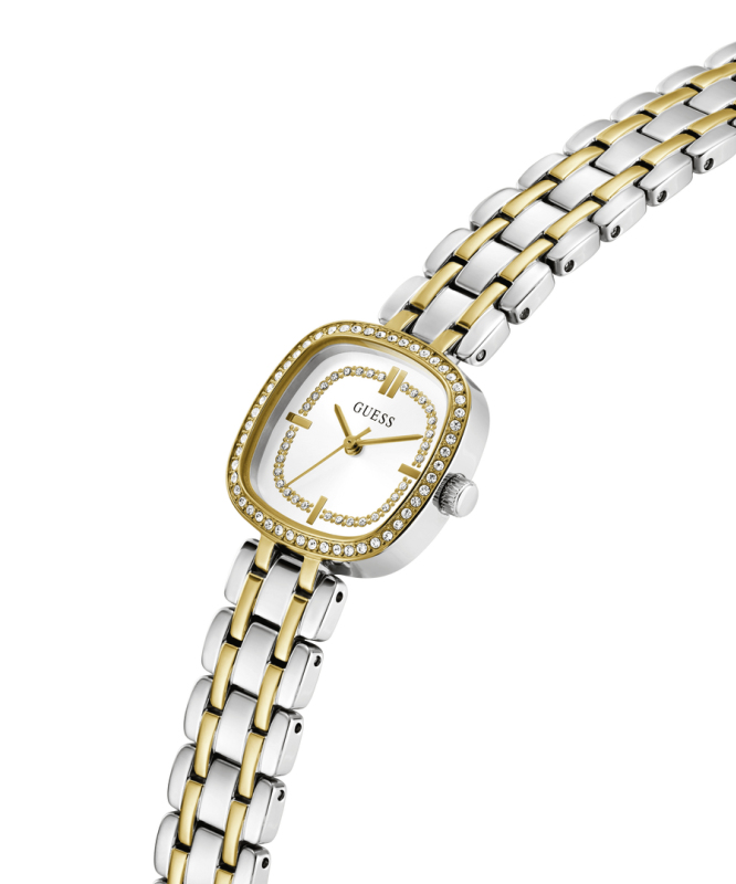 Leštěná povrchová úprava. Zapínání G-Link. Quartz analog hodinky. Ploché minerální sklo. Slunečně broušený ciferník (sunray). Luneta a ciferník osazené krystaly. Čtvercové pouzdro malé velikosti. Bez podsvícení. Materiál pouzdra: nerezová ocel. Materiál pásku: nerezová ocel. Velikost pouzdra: 25 mm. Výška pouzdra: 7,25 mm. Rozteč nožek pouzdra: 13 mm. Voděodolnost: 5 ATM. Váha hodinek: 59,5 g.