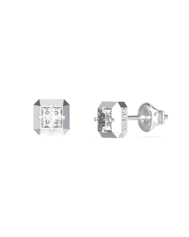 Náušnice z nerezové oceli. Peckové náušnice ve tvaru kostky zdobené krystalem. Logo Guess na šperku. Zapínání na puzetku. Velikost náušnic: 7 mm. . Složení: 90 % nerezová ocel, 10 % krystaly. .
