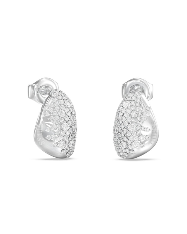 Náušnice z nerezové oceli. Peckové náušnice zdobené pavé krystaly. Motiv kamínku. Zapínání na puzetu. Velikost náušnic: 14 mm. Složení: 98 % nerezová ocel, 2 % krystaly.