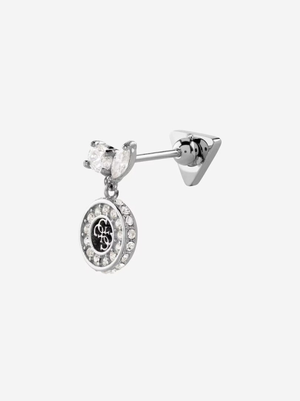 Jeden kus náušnice - piercing. Náušnice z nerezové oceli. Zdobené krystaly a 4G logem. Zapínání na šroubek/labreta (titanová tyčinka). Velikost náušnic: 12 mm. Povrchová úprava: rhodium. Složení: 60 % nerezová ocel, 30 % titan, 5 % krystaly, 5 % kubická zirkonie.
