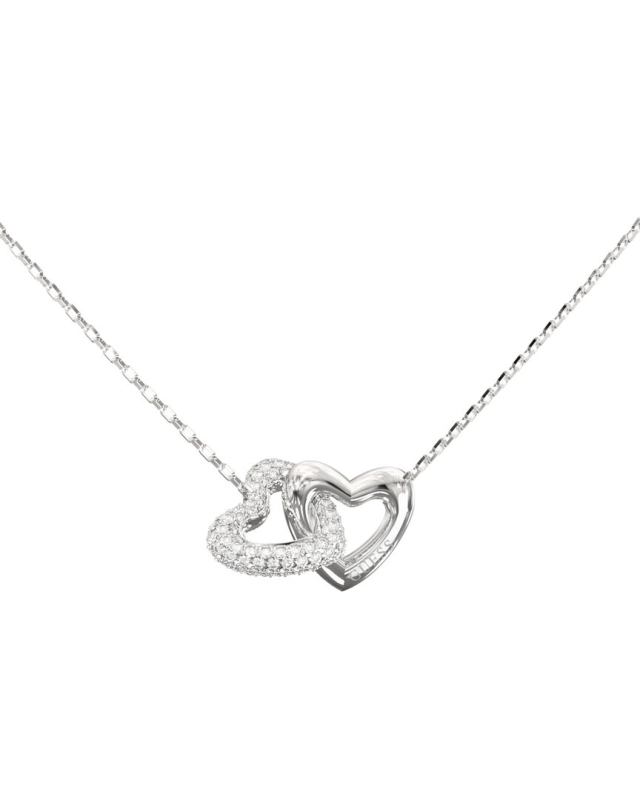 Náhrdelník z nerezové oceli. Článkový jemný řetízek. Motiv propojených srdcí zdobených krystaly. Karabinkové zapínání na 3 velikosti. Délka náhrdelníku: 40,7–45,7 cm. Složení: 95 % nerezová ocel, 5 % krystaly.