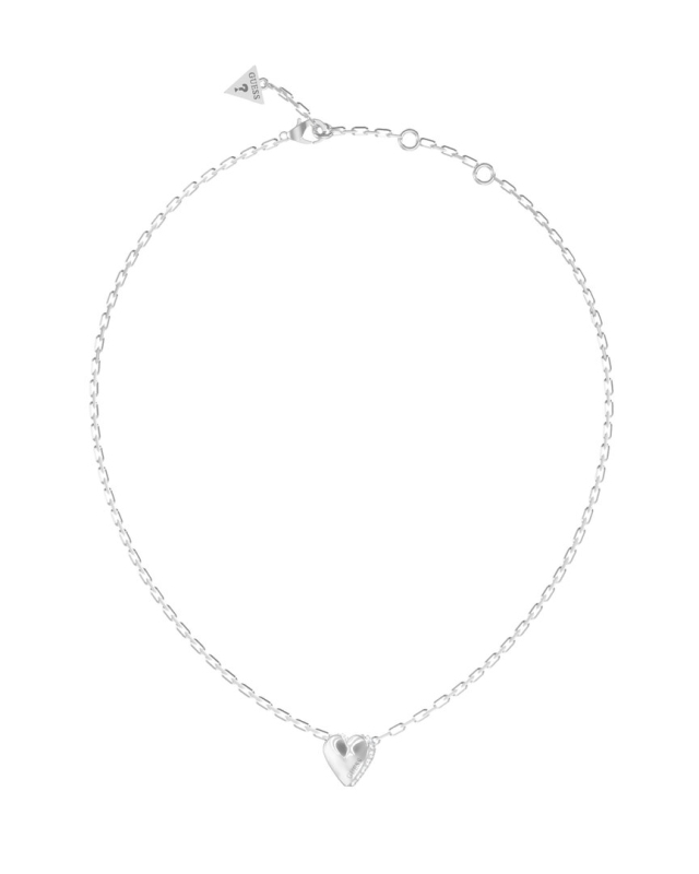 Náhrdelník z nerezové oceli. Přívěsek ve tvaru srdce zdobený krystaly. Gravírované logo Guess. Článkový řetízek. Karabinkové zapínání na 3 velikosti. Velikost přívěsku: 8 mm. Délka náhrdelníku: 40,7–45,7 cm. Složení: 99 % nerezová ocel, 1 % krystaly.