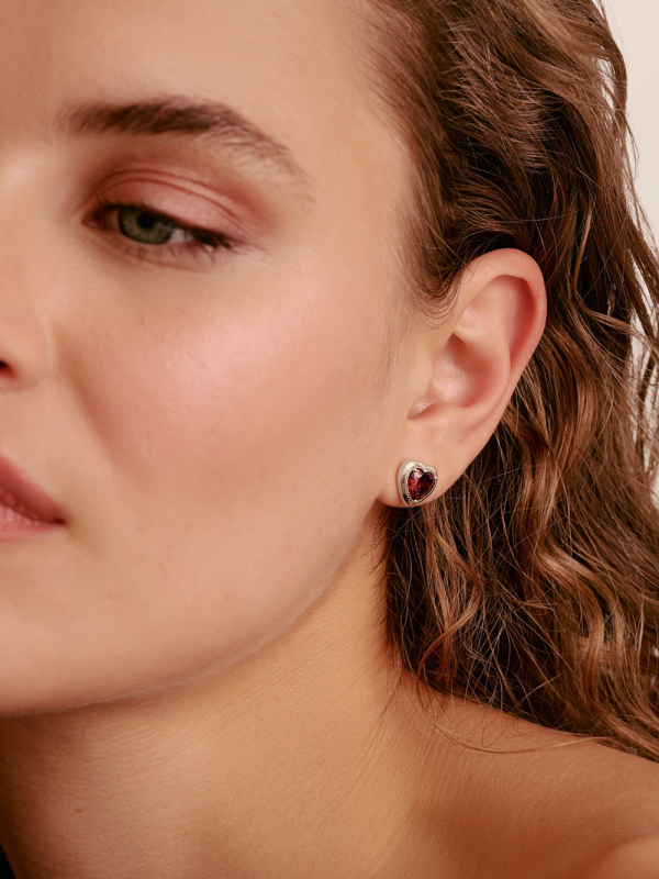 Modelová řada Ohrstecker Herz Granatrot Elyndra Silber,Stud earrings Heart garnet red Elyndra Silver