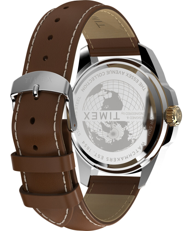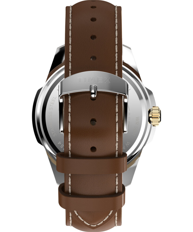 Leštěná a kartáčovaná povrchová úprava. Zapínání na přezku. Datumové okénko a den v týdnu. Luminiscenční ručičky. Quartz analog baterie. Minerální sklo. Voděodolné do 50 metrů. Materiál pouzdra: nerezová ocel. Materiál pásku: kůže. Velikost pouzdra: 45 mm. Výška pouzdra: 11 mm. Šířka pásku: 22 mm. Délka pásku: 150 - 205 mm.