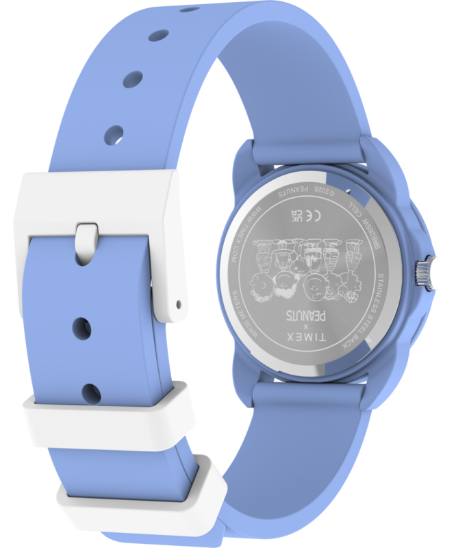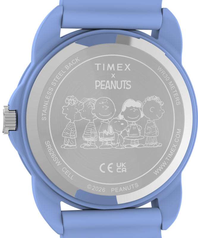 Matná povrchová úprava. Silikonový pásek. Zapínání na přezku. Plný arabský index. Quartz analog baterie. Akrylátové sklo. Lehké dětské provedení. Voděodolné do 30 metrů. Motiv Peanuts na ciferníku. Materiál pouzdra: ABS. Materiál pásku: silikon. Velikost pouzdra: 30 mm. Výška pouzdra: 10 mm. Šířka pásku: 16 mm. Obvod zápěstí: 135 - 150 mm.